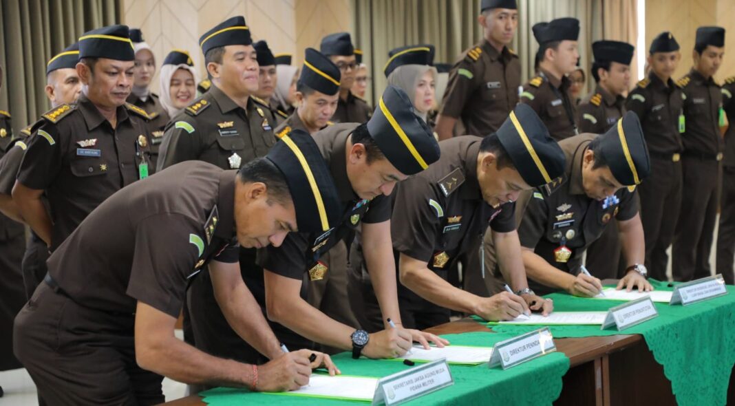 Acara penandatanganan komitmen bersama dan pakta integritas berlangsung di Menara Kartika Adhyaksa, Kejagung Jakarta, Senin (24/03/2025).