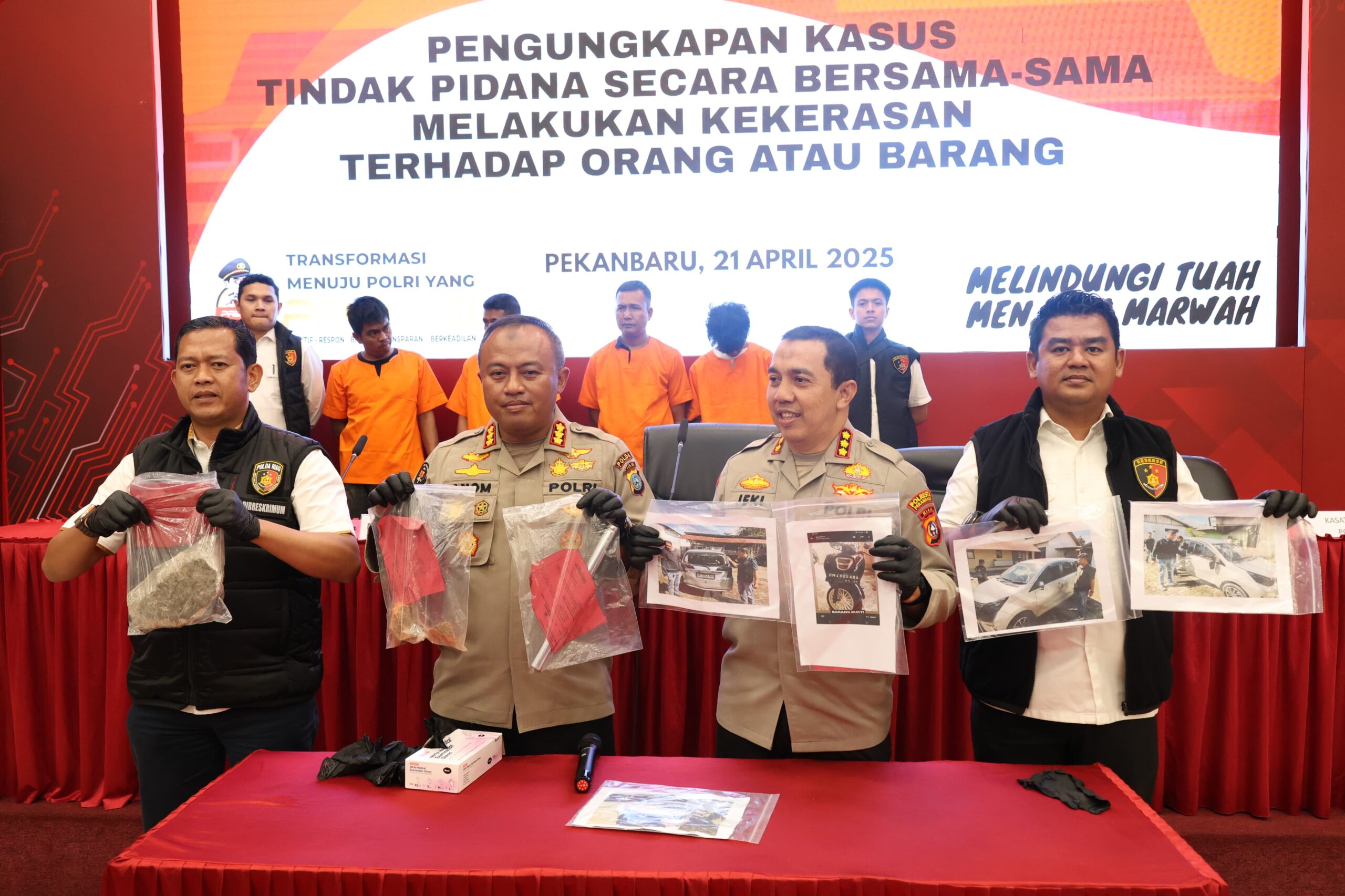 Jakarta | AndoraNews: Tim gabungan dari Polda Riau dan Polresta Pekanbaru menangkap empat debt collector yang melakukan tindakan brutal di halaman Polsek Bukit Raya Pekanbaru, Riau. Polda riau
