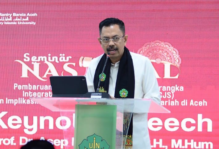 Banda Aceh | AndoraNews : Jaksa Agung Muda Tindak Pidana Umum (JAM-Pidum) Kejaksaan Agung RI, Prof. Asep N. Mulyana, memaparkan urgensi dan arah pembaruan Kitab Undang-Undang Hukum Acara Pidana (KUHAP) dalam Seminar Nasional bertema “Pembaruan KUHAP dalam Kerangka Integrated Criminal Justice System (Sistem Peradilan Pidana Terpadu)“. Jampidum