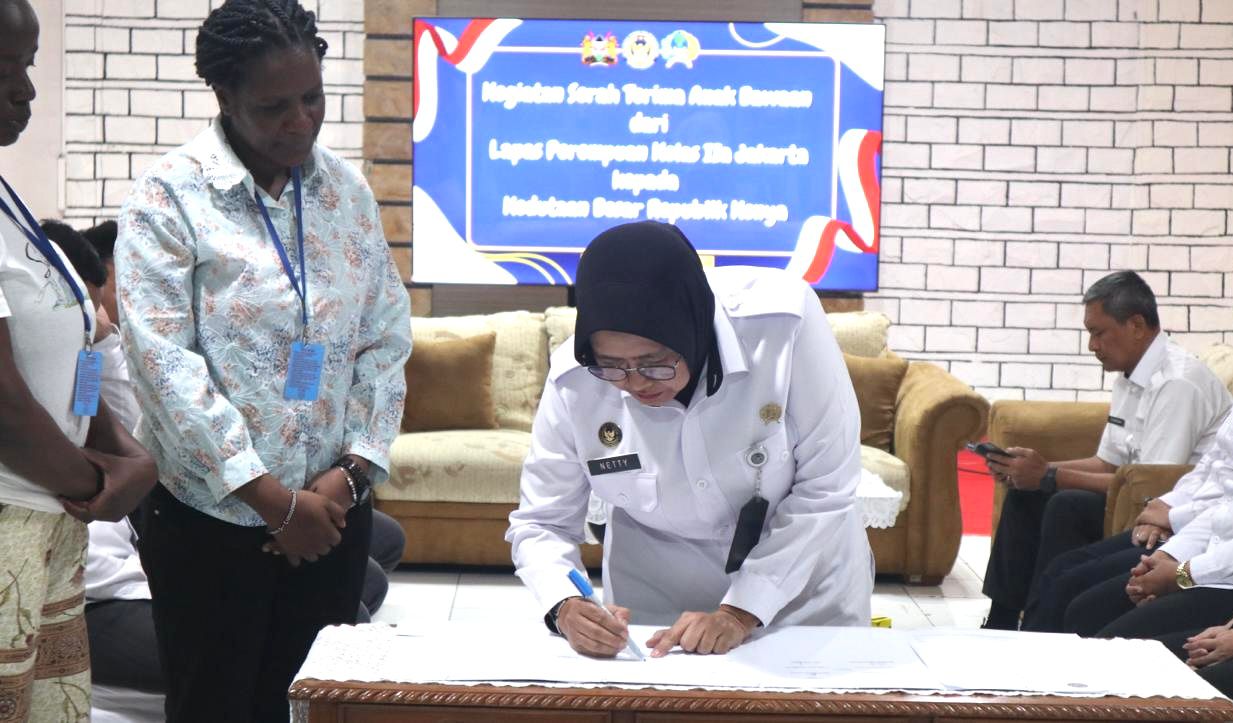 Jakarta | AndoraNews :Lembaga Pemasyarakatan (Lapas) Perempuan Kelas IIA Jakarta menyerahkan seorang anak bawaan warga binaan asal Kenya kepada perwakilan Kedutaan Besar Republik Kenya di Jakarta untuk dipulangkan ke negaranya. Penyerahan dilakukan pada Kamis (23/10/2025) di Aula Lapas Perempuan Kelas IIA Jakarta, disaksikan sejumlah pihak terkait dari Direktorat Jenderal Pemasyarakatan, Imigrasi, dan perwakilan Kedutaan Besar Kenya. Lapas
