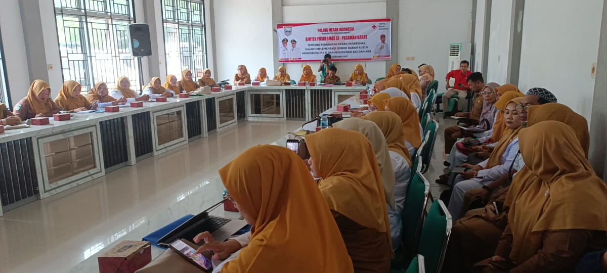 Pasaman Barat | AndoraNews: Palang Merah Indonesia (PMI) Kabupaten Pasaman Barat menggelar Bimbingan Teknis (Bimtek) bagi seluruh Puskesmas se-Kabupaten Pasaman Barat dengan tema “Penguatan Peran Puskesmas dalam Implementasi Program Donor Darah Rutin untuk Mendukung P4K serta Penurunan AKI dan AKB.” dinkes