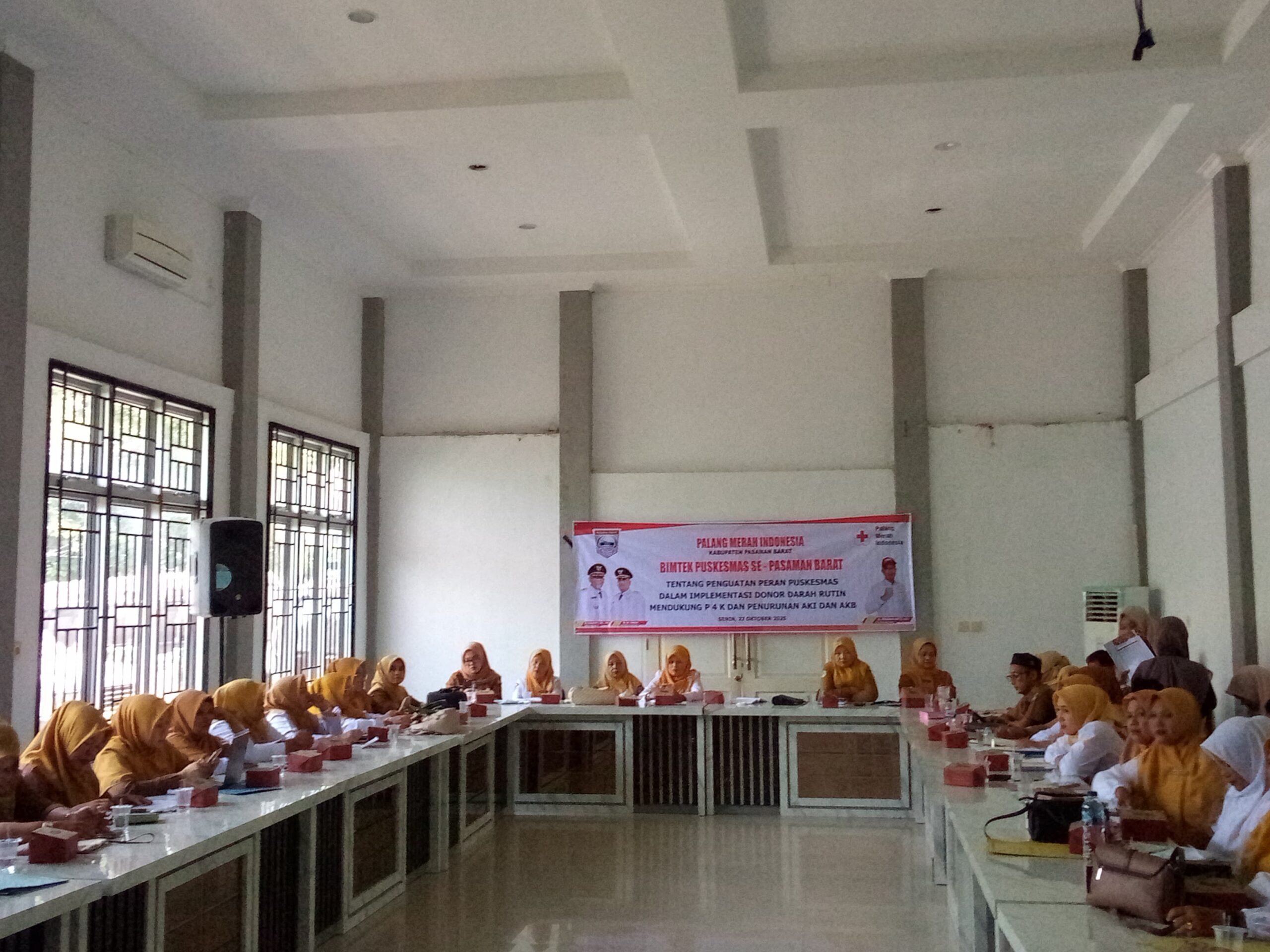 Pasaman Barat | AndoraNews: Palang Merah Indonesia (PMI) Kabupaten Pasaman Barat menggelar Bimbingan Teknis (Bimtek) bagi seluruh Puskesmas se-Kabupaten Pasaman Barat dengan tema “Penguatan Peran Puskesmas dalam Implementasi Program Donor Darah Rutin untuk Mendukung P4K serta Penurunan AKI dan AKB.” dinkes