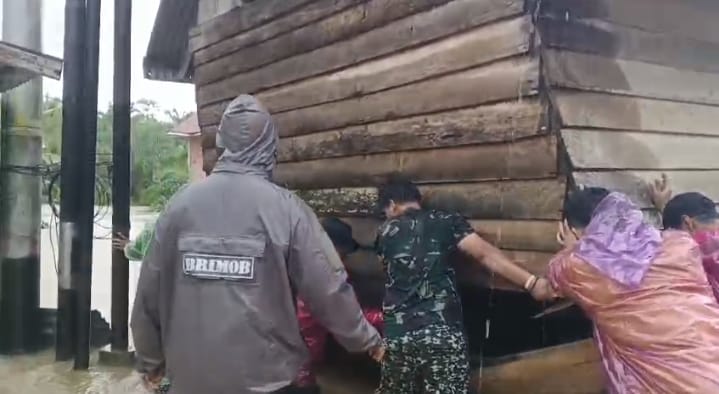 Dari laporan yang diterima, kendala paling mendesak adalah satu unit rumah warga yang hanyut terbawa kuatnya arus banjir hingga tersangkut dan melintang di tengah badan jalan. Posisi rumah yang melintang tersebut seketika membuat macet akses lalu lintas kendaraan di jalur vital Simpang Empat-Ujung Gading.