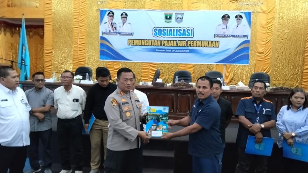 Pasaman Barat | AndoraNews : Kepala Kepolisian Resor (Kapolres) Pasaman Barat, AKBP Agung Tribawanto, S.I.K., menunjukkan dukungan terhadap upaya pemerintah daerah dalam mengoptimalkan Pendapatan Asli Daerah (PAD). Hal ini terlihat dari kehadiran beliau dalam acara Sosialisasi Pemungutan Pajak Air Permukaan (PAP) yang digelar di Aula Kantor Bupati Pasaman Barat, Rabu (28/1/2026). Kapolres