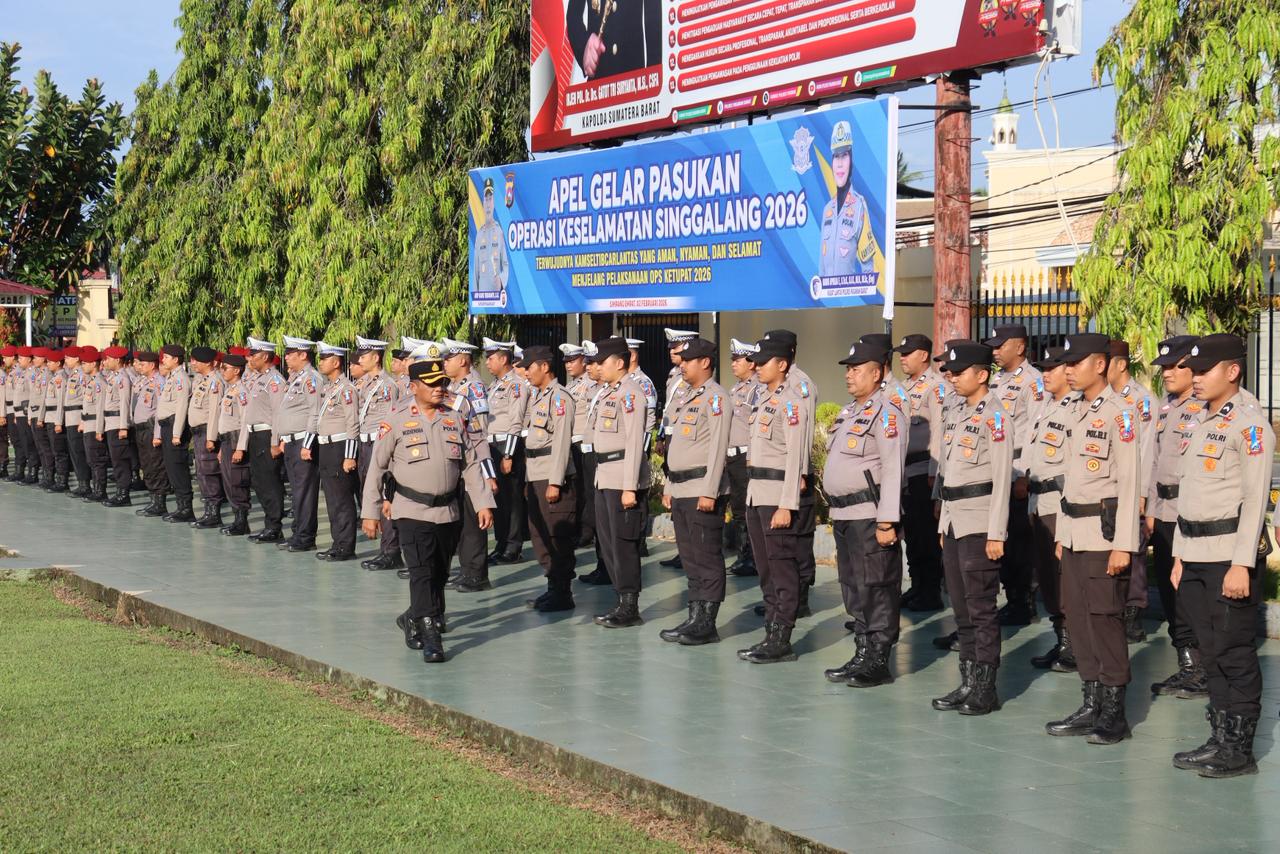 Pasaman Barat | AndoraNews : Kepolisian Resor (Polres) Pasaman Barat, Sumatera Barat (Sumbar), menggelar Apel Pasukan Operasi Keselamatan Singgalang tahun 2026, di halaman Mako Polres setempat pada Senin (2/2/2026) pagi. Polres